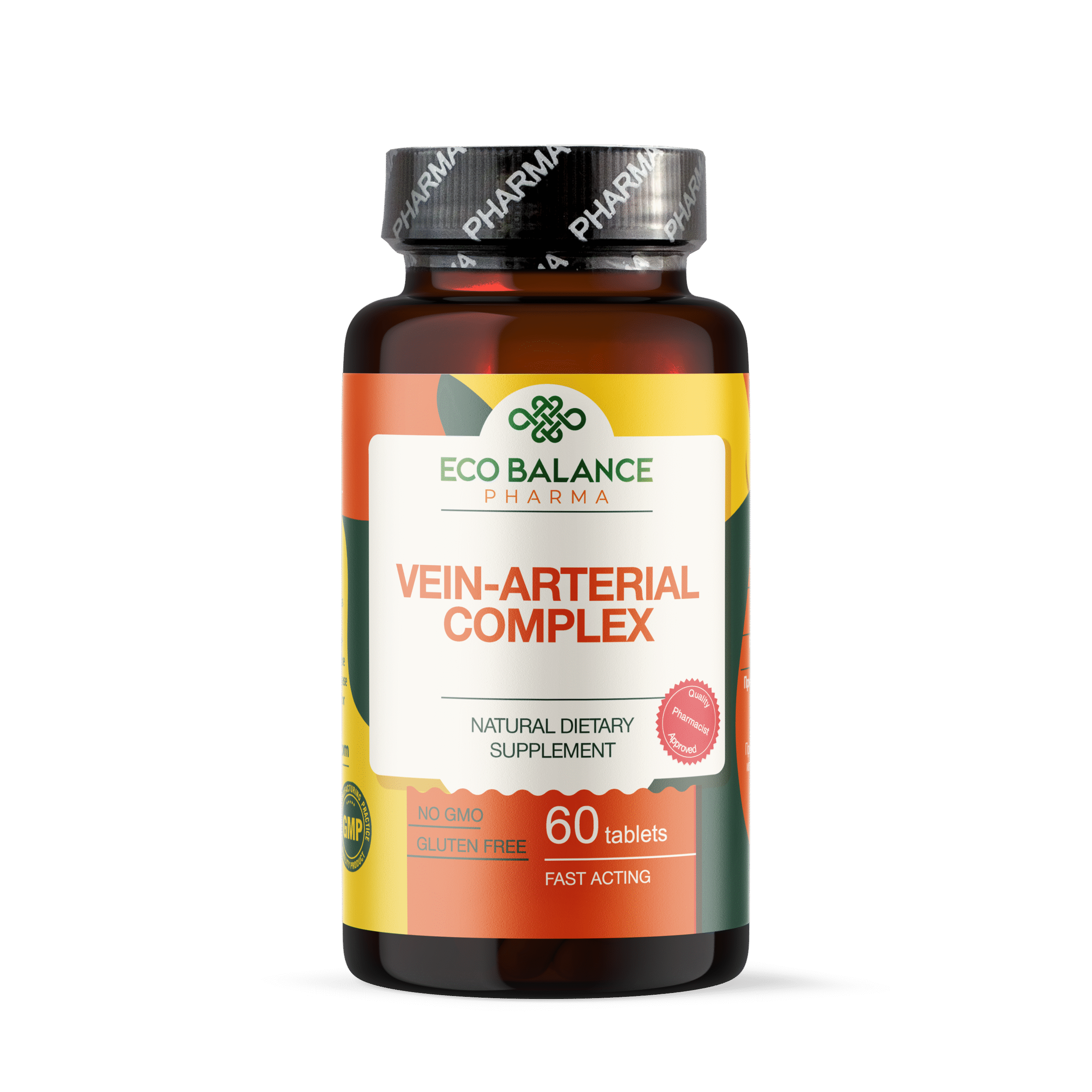 ВЕНО-АРТЕРИАЛЕН КОМПЛЕКС от ECO BALANCE PHARMA съдържа Екстракт от портокалови кори на Citrus sinensis, съдържащ Диосмин 600mg + Екстракт от плод на конски кестен Aesculus hippocastanum 300mg + Екстракт от гроздови семки (Grape seed extract) 100m