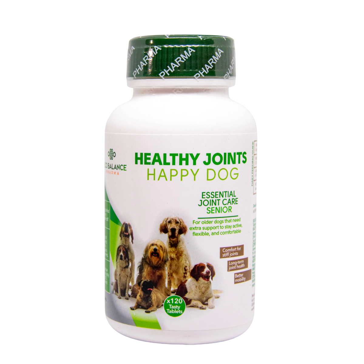 HEALTHY JOINTS HAPPY DOG е допълваща храна за по-възрастни кучета, обогатена със зеленоуста мида, Омега-3 от рибено масло, глюкозамин и хиалуронова киселина. Подпомага мобилността, облекчава сковаността на ставите, предпазва ставния хрущял от износване и осигурява дългосрочен комфорт и гъвкавост при движение на вашия домашен любимец.